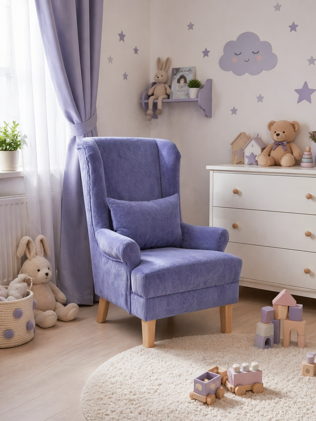 Detské kresielko vhodné na sedenie pre deti v ich detských izbičkách. Rovnako je vhodné pre škôlky, v ktorom deti môžu relaxovať, čítať si knihy. Kresielko je veľmi pekný doplnok. Z našej ponuky látok si môžete vybrať farebné prevedenia, ktoré Vám vyhovujú.