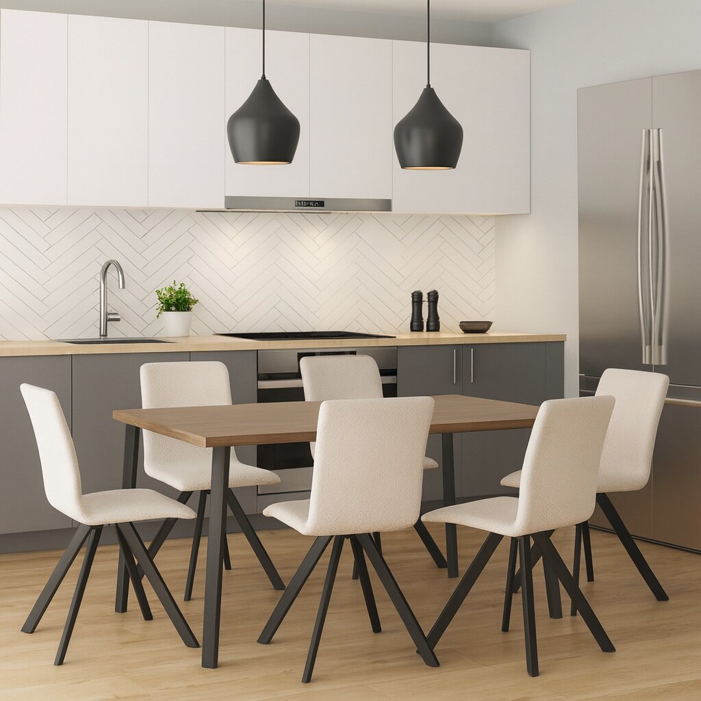 Čalúnená jedálenská stolička s kovovou podnožou. Pohodlná stolička v základných farbách. Kovová podnož čiernej farby.