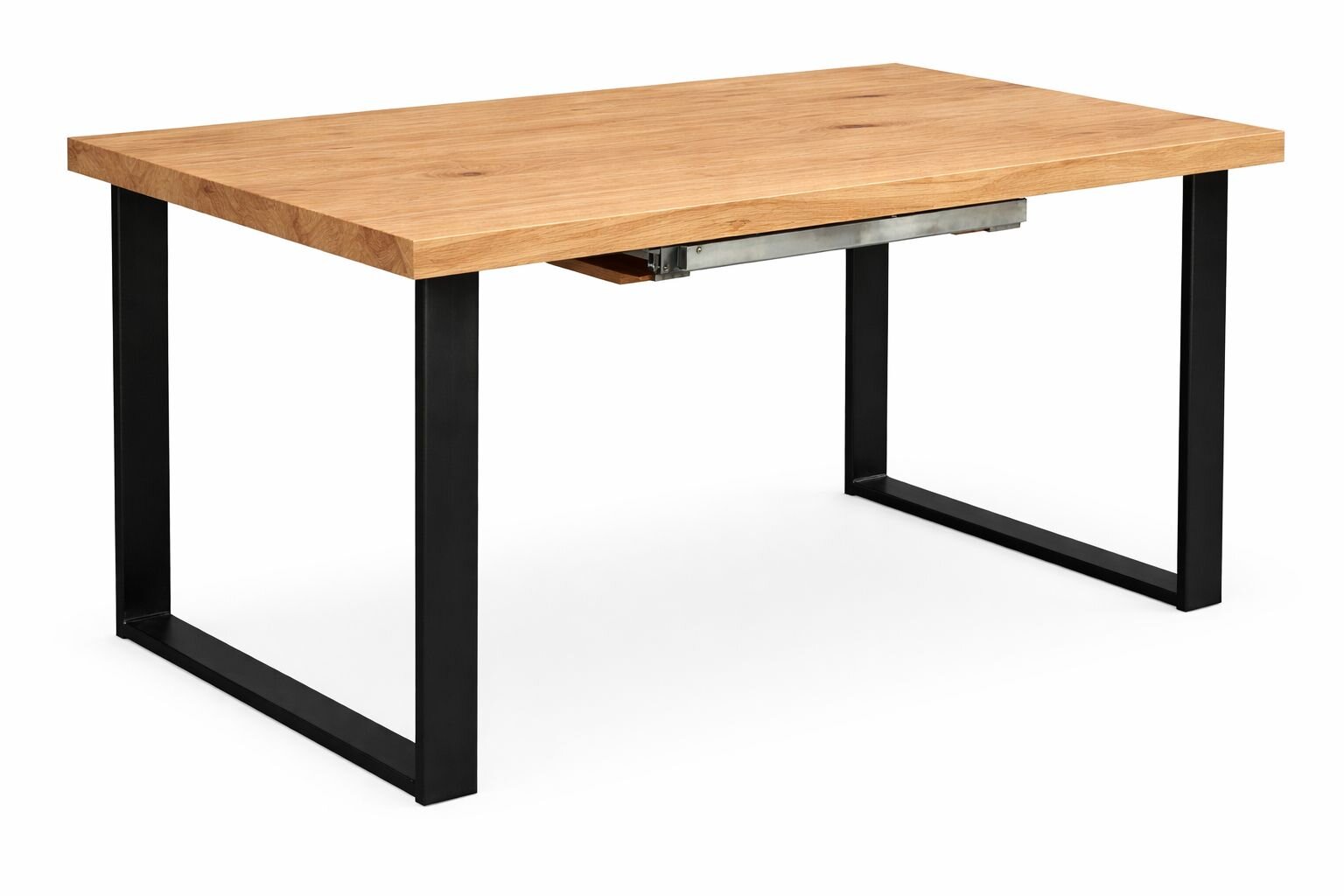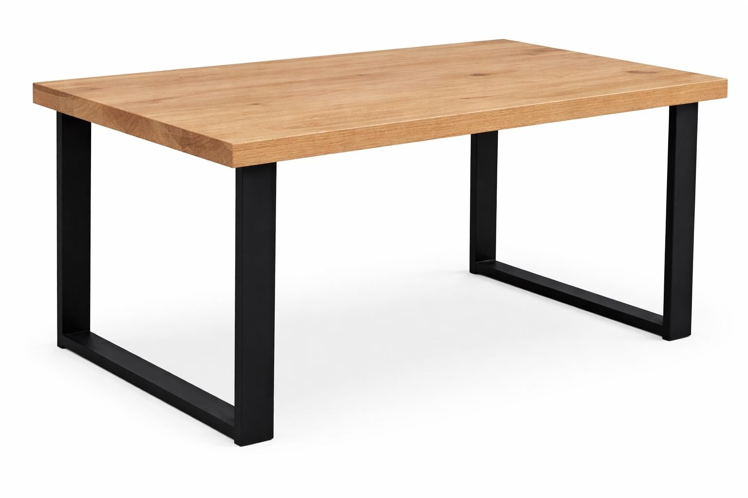 Jedálenský stôl moderného dizajnu s ladnými tvarmi. Vrchný plát stola je masívna dubová doska , možnosť dekoru CINK v v hrúbke 27 mm v kombinácii s kovovou modernou podnožou na krajoch stola. Praktický do rôznych priestorov. Doladíte k nemu stoličky rôznych modelov a aj kresielka a stoličky s podrúčkami. Stôl vhodný aj k stoličkám s kovovými nohami. Dostupný vo viacerých rozmeroch bez rozkladania v pevnom prevedení.